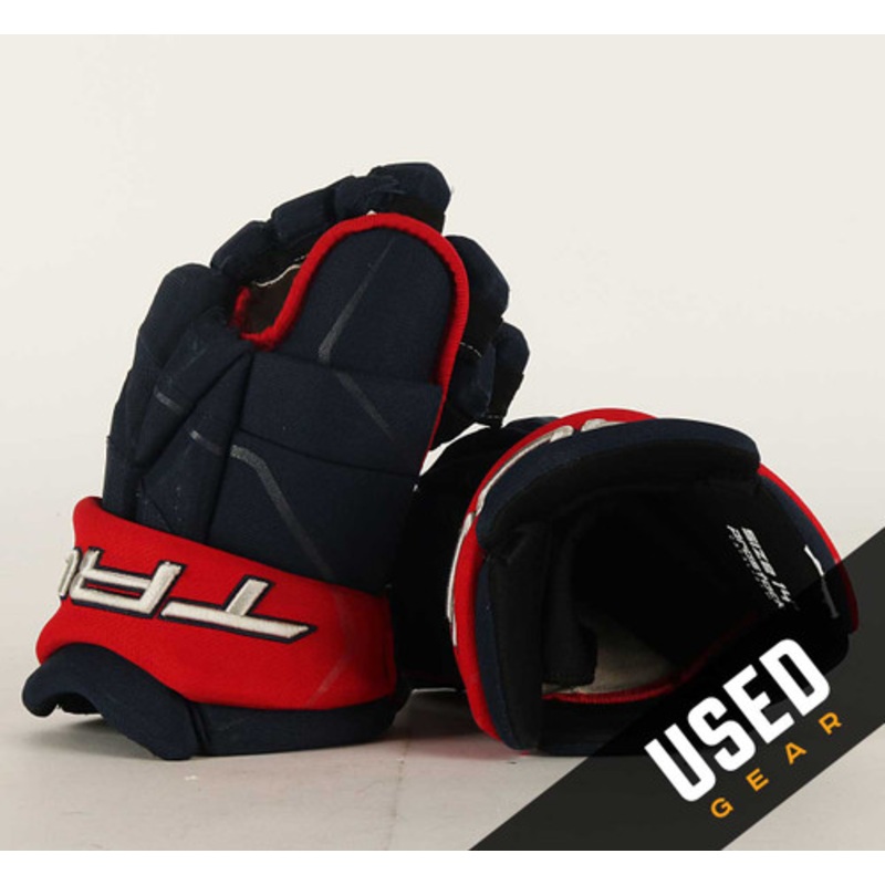These gloves have been lightly used. The palms may show minor wear, and the gloves may have small markings. Brand TRUE SKU: UPC: Team Columbus Blue Jackets Player Team Stock Primary Color Navy Blue Model Catalyst 9X Cuff Yes Size 14" Width Standard Age Gro