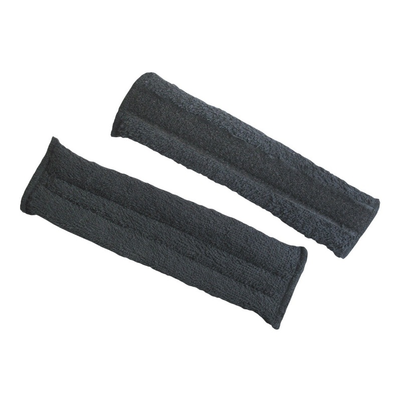 Two absorbent, soft, terry cotton replacement sweat bands for goalie helmets.