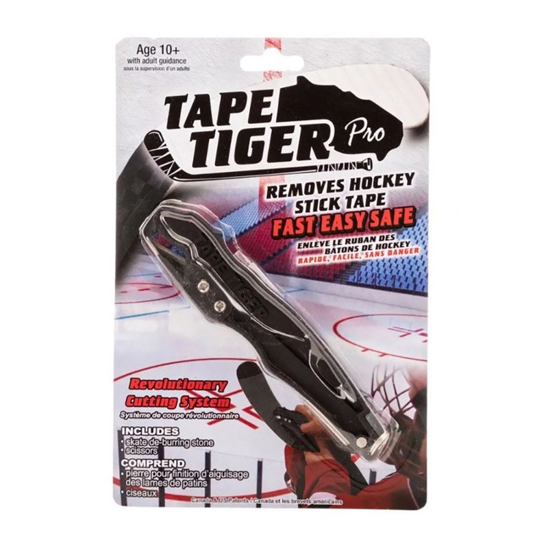The Tape Tiger Pro but A&R helps you remove hockey stick tape quickly, easily & safely. No longer will you have to mess with sticky, used-up tape. With its revolutionary cutting system & additional tools built in, you may never need another bag-tool again. Includes skate de-burring stone & scissors.