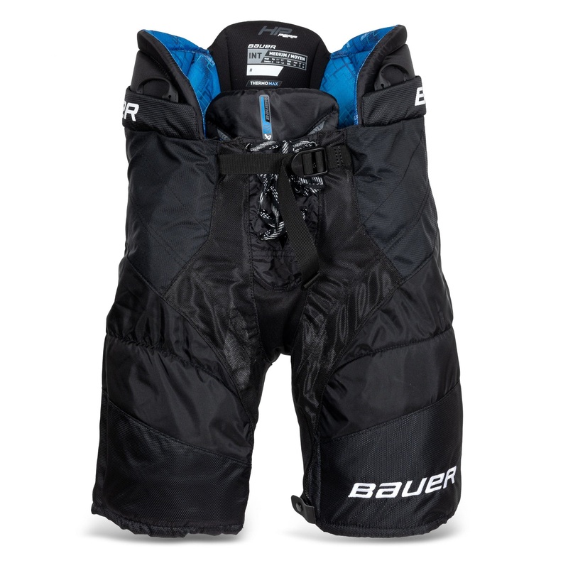 The Bauer HP Performance Intermediate Hockey Pants are available in sizes M and L in colors Black, Blue, Navy and Red.