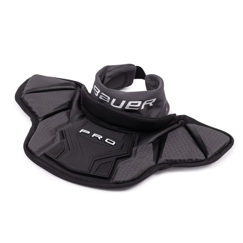 New for 2021, the Bauer Pro SR Goalie Neck Guard combines comfortable skate cut coverage and pro-level shot protection. Bauer achieves this through strategic uses of comfortable BNQ-certified material and high density foams.