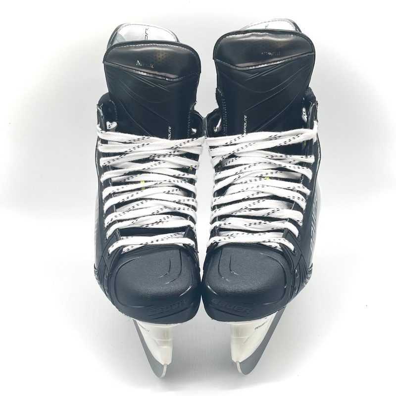 New Bauer Vapor Hyperlite 2 skates from an NCAA team. Size 8D with 272 Power Fly holders and FLY-TI steel. These skates come with the name Niemo printed on the tongues.