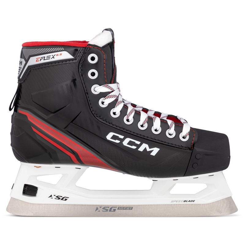 The skates use CCMs quick-release Speedblade XSG holder with a bladelock system, coupled with CCMs XSG 10F27. This steel is built to provide a long-lasting edge for sustained performance, and the new 10F27 profile encourages a forward-leaning and more aggressive goalie stance.