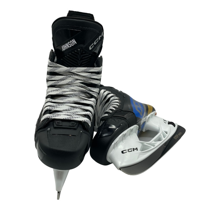 New CCM Jetspeed FT6 Pro Pro Stock Hockey SkatesSourced from our of our pro team partners these skates come in a custom colourway and have the players last name printed on the tongue. They are size 7W with 263 XS Holders and Step Blacksteel.