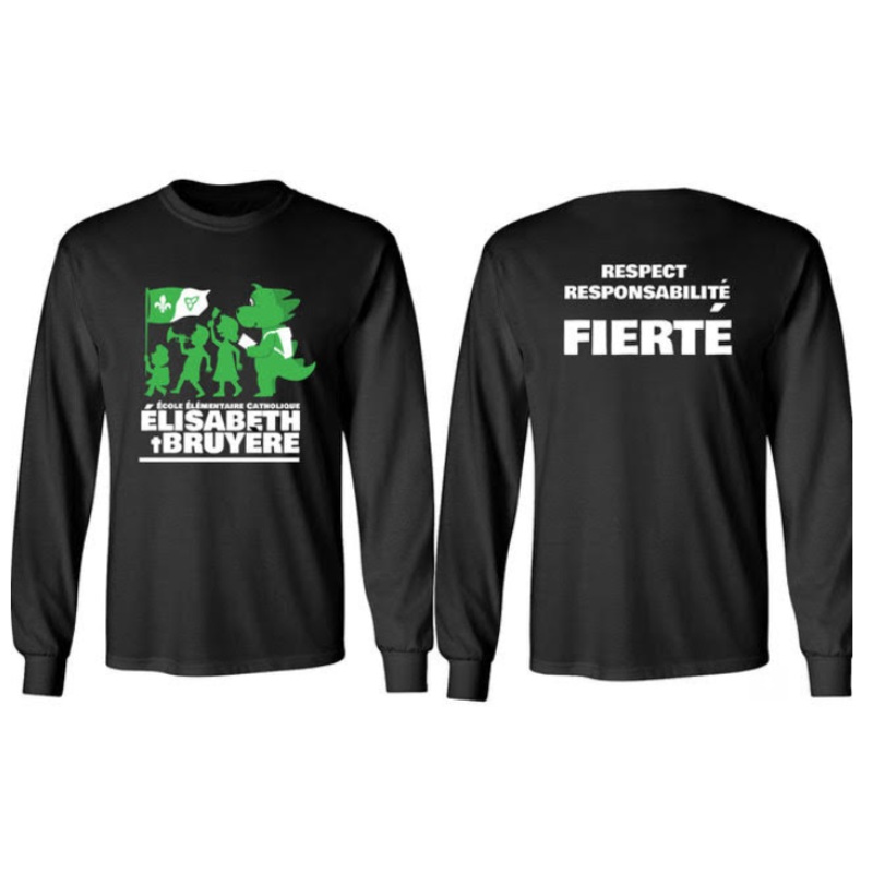 COLE LMENTAIRE CATHOLIQUE LISABETH-BRUYRE ATC DRYFIT LONG SLEEVE TEE WITH 3-COLOUR LOGO PRINTED ON FRONT AND 1-COLOUR ON BACK