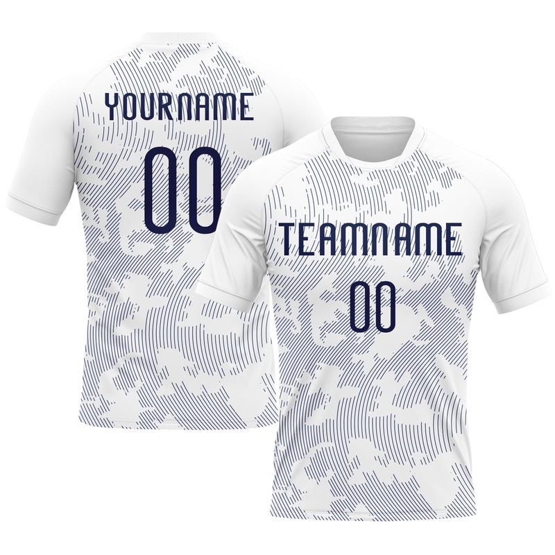 Custom White Navy Curve Lines Sublimation Volleyball Uniform Jersey