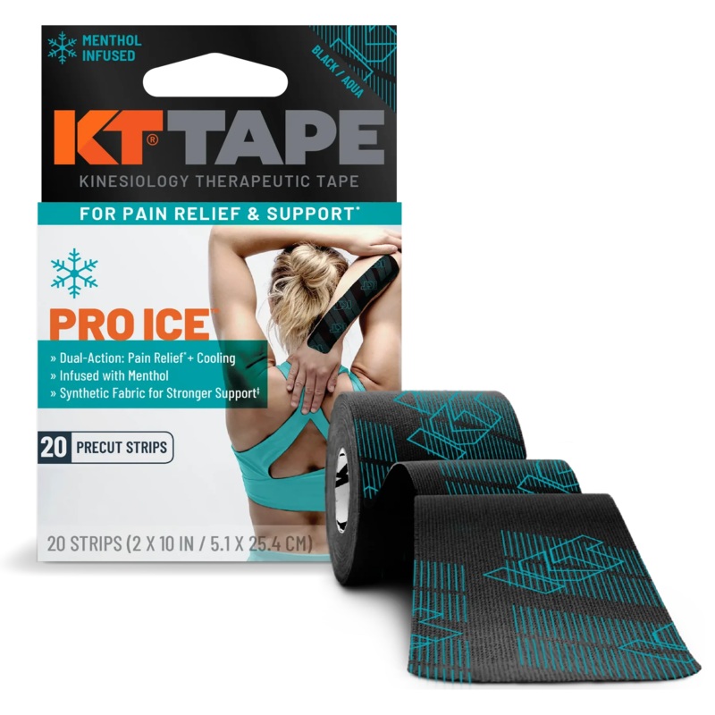 Introducing KT TapePro Ice the ultimate solution for dual-action: pain relief + cooling. Crafted with cutting-edge technology and designed for athletes like you, KT TapePro Icecombines the reliability of the long-lasting KT Tape Pro kinesiology tape you know and trust, with the power of fast-acting menthol for effective dual-action: pain relief + cooling and unparalleled support and comfort.