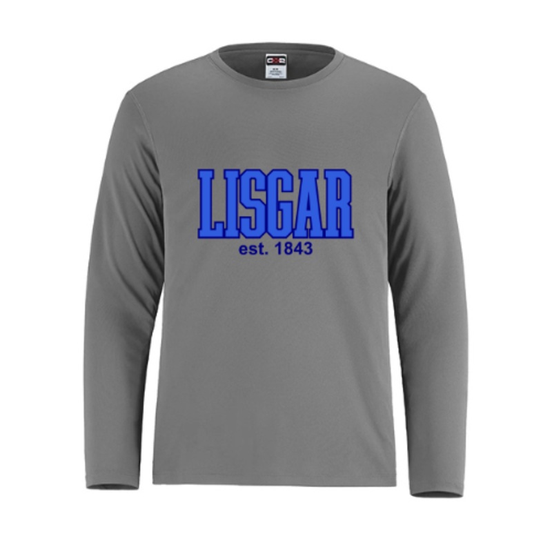 WFP14656499LISGAR COLLEGIATE INSTITUTE SHORE LONG SLEEVE TSHIRT WITH FULL FRONT HEAT PRESS LOGO