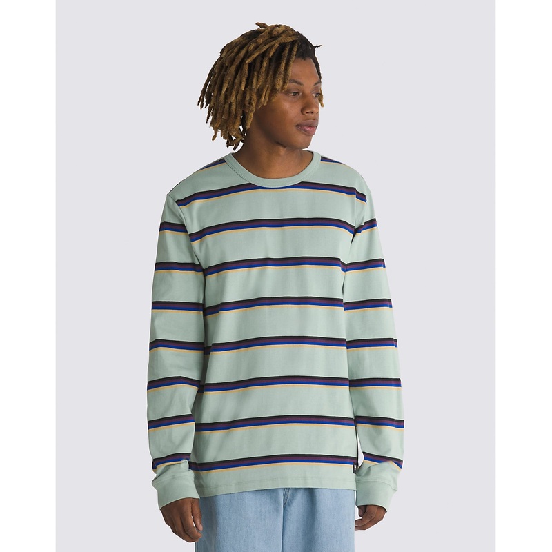 The Leffco Long Sleeve Shirt is a long sleeve crewneck tee made from a heavier weight cotton and features yarn dyed stipes and Vans patch at the lower hem.100% Cotton fabricLong sleeve crew neck T-shirtYarn dyed stripesClassic fitModel wearing size Medium