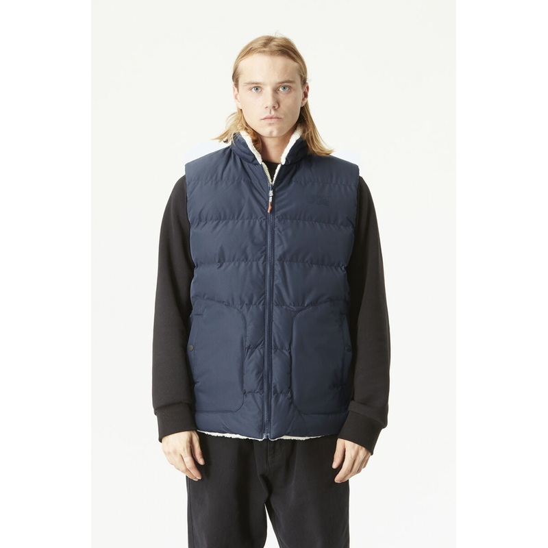 Our essential reversible sleeveless puffer.The Russello Vest is a sleeveless puffer vest designed for warmth, comfort and style. Sustainably crafted with a recycled polyester blend, it features recycled synthetic insulation, our sustainable membrane and a