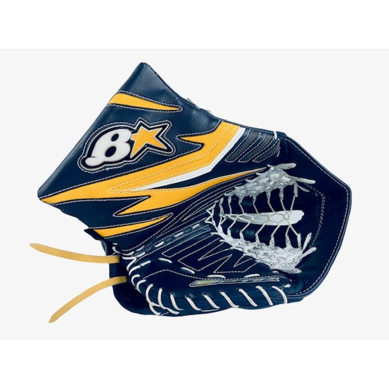 The Brians OPTiK 2 catcher is designed to take any sort of abuse the elite level goaltender can throw at it. Hand-made in Canada, Brians uses the most durable leather available to them wrapped around a lightweight, strong Engineered-Foam core. A beveled thumb design directs an increased number of pucks into the large single T pocket. The OPTiK 2 uses a comfortable 40 break angle matched with a game ready palm helping it effortlessly snap shut right out of the box. A raised HD foam finger ridge on the back of the catcher paired with a sturdy leather construction helps protect your fingers from slashes when covering the puck. Brians uses an SBA palm and cuff combined with their Hex-Air technology and Air-Knit finger stalls to improve comfort and airflow while the use of the BOA dial system allows for fine adjustments helping keep your hands locked into the glove throughout the game. As with all pro level Brians gear, the OPTiK 2 catcher is available in custom colours, graphics as well as many other custom options.