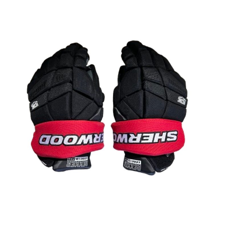 Sherwood Rekker Legend Pro – Used Pro Stock Hockey Glove (Black/Red)