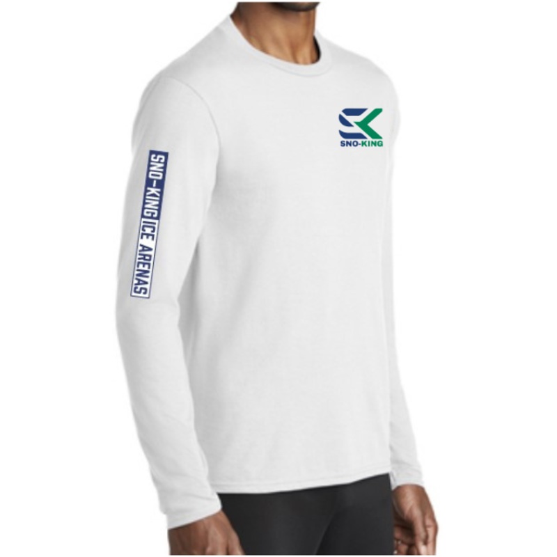 Long Sleeve Performance Tshirt with Sno-King Ice Arenas printed logo down right sleeve and SK logo on left chest.Product DescriptionLightweight, roomy and highly breathable, these moisture-wicking, feature PosiCharge technology to lock in color and prevent