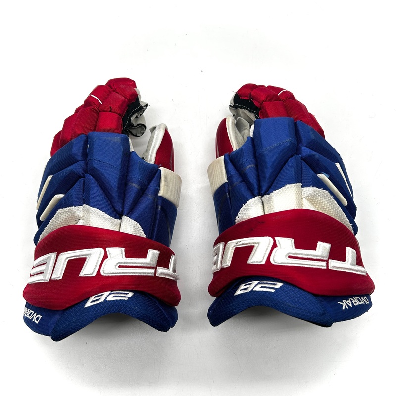 TRUE Catalyst 9X - Used NHL Pro Stock Gloves - Christian Dvorak (Blue/Red/White)These gloves have been sourced straight from the Montreal Canadiens locker room. The gloves are in good used condition with no rips or tears. These gloves have the thumb loops