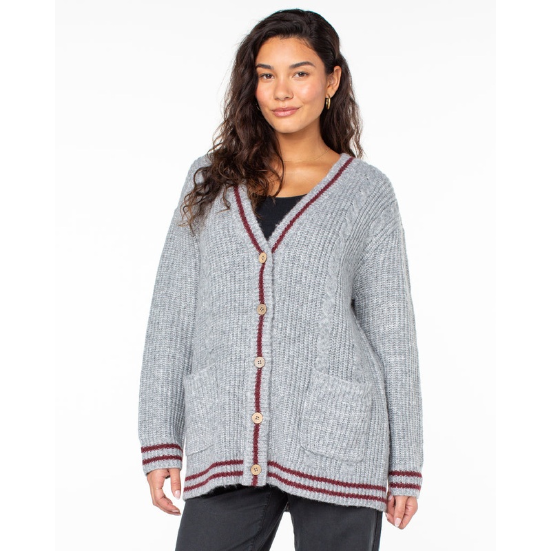 Crafted from a soft, breathable cable knit blend, this long button-up cardigan makes layering for game day comfort a walk in the park. Cozy never looked so chic.